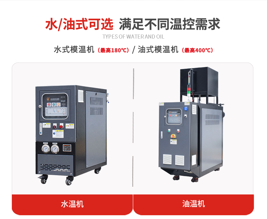 PLC智能模溫機目前市主要有兩種,一種是以水作為媒介的水溫機,一種是以導熱油作為媒介的油溫機。可控性強,安全程度較高,PLC智能模溫機換熱效率可達到95%以上。